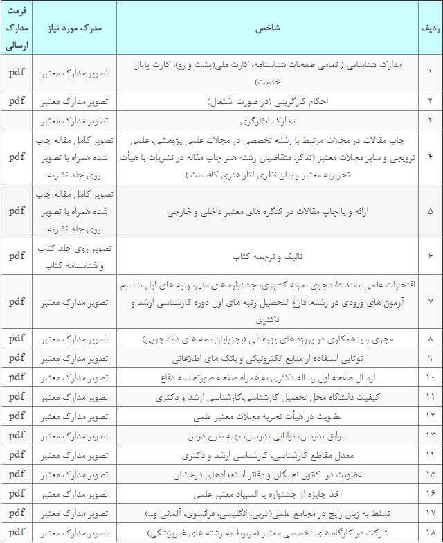 مدارک موردنیاز برای بررسی و ارزیابی اولیه به شرح زیر است: